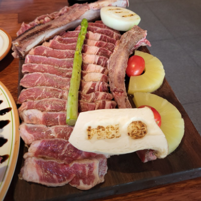음식도 뷰도 정말 좋아요. 고기 종류 상관없이 다 맛있었어요. 그 중 우대갈비 쫀쫀하고 부드러운게 너무 만족스러웠습니다.