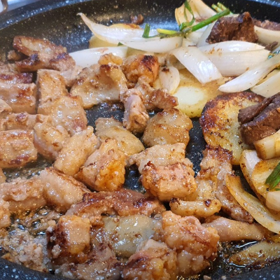 기본안주로 간과 천엽이나오는데 양이 제법 많아요. 간이 아주 신선해요.