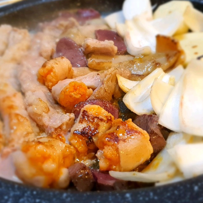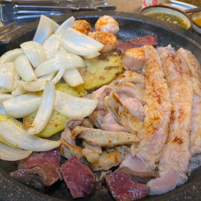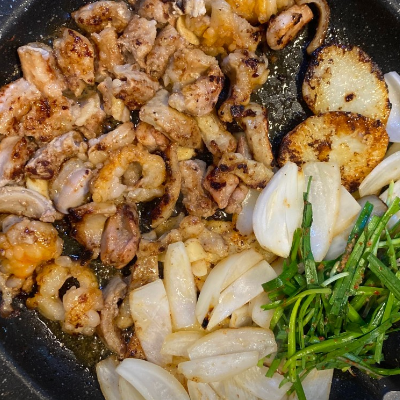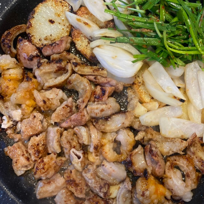 대창을 지글지글 구워서 먹었어요. 마지막에 볶음밥도 필수입니다.