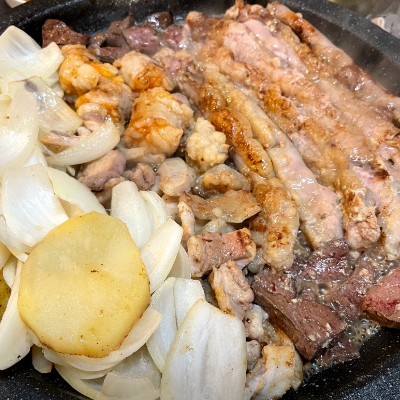 적당하게 1인분 먹는 분들 기준 셋이서 2인분이면 충분한것 같아요. 볶음밥으로 마무리 하시면 됩니다.