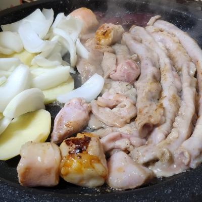 대창을 지글지글 구워서 먹었어요. 마지막에 볶음밥도 필수입니다.
