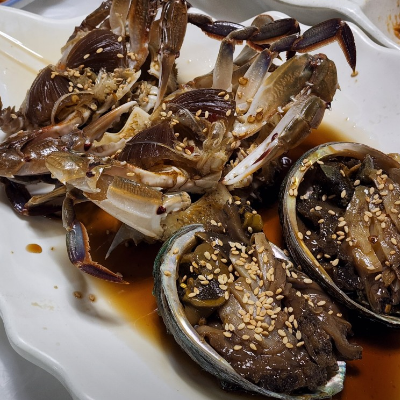 회는 싱싱하고 쫀득하구, 간장게장과 전복은 하나도 비리지 않았어요.