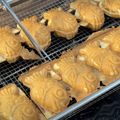 귀엽게 크기별로 아기붕어빵 과 엄마붕어빵 으로 나눠서 팔고 있는데 아기붕어빵 너무 귀여운거 있죠.