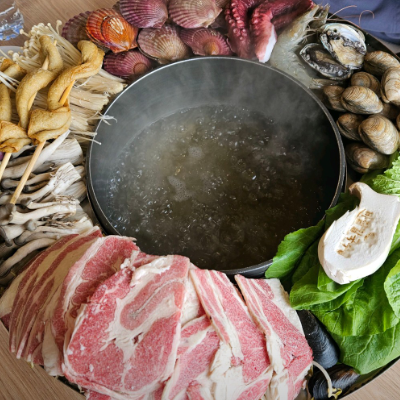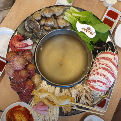 재료가 신선하고 김치도 맛있습니다. 고기랑 해산물이랑 칼국수를 다같이먹을수있어서 더 좋은것 같아요.