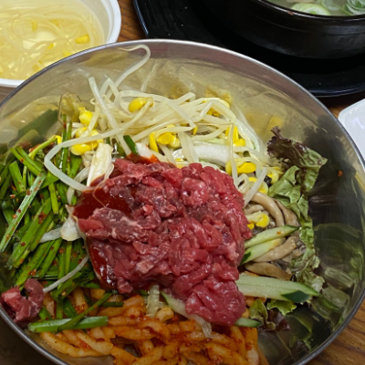 전에 왔을때 육회비빔밥이 안되었는데 평일에오니 먹을 수 있었어요. 소스가 진짜 너무나 맛있어요.