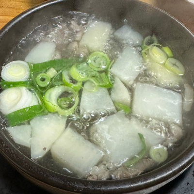 펄펄 끓는 무우국을 호호 불어 식힌 후 입에 넣고 나면 자동적으로 감탄사가 나옵니다.