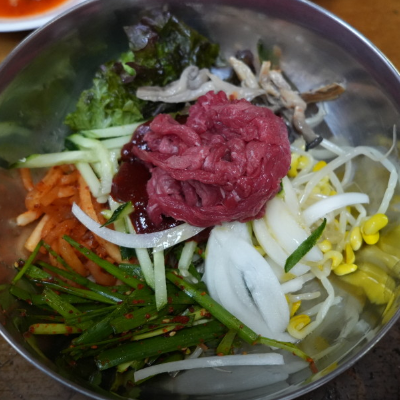 깔끔하고 맛있어요. 주말엔 육회비빔밥이 안되대서 무침 먹었는데, 그냥 막접시에 조금 나와서 밑반찬인줄 알았어요.