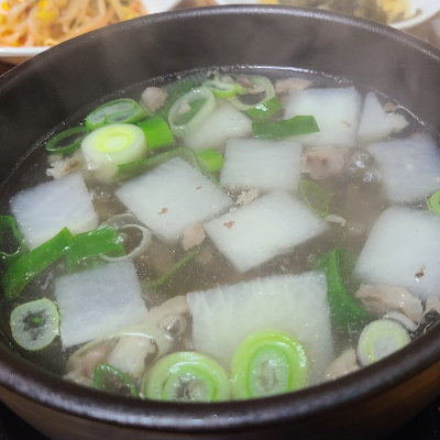펄펄 끓는 무우국을 호호 불어 식힌 후 입에 넣고 나면 자동적으로 감탄사가 나옵니다.