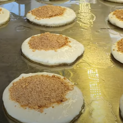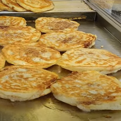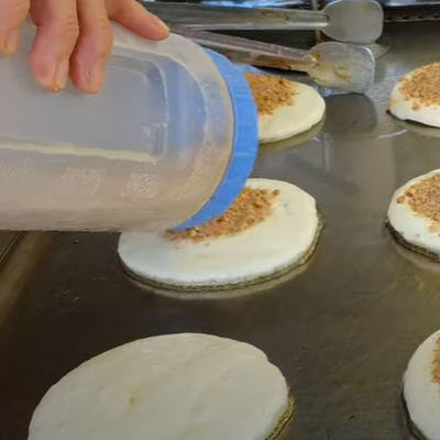 달인의 호떡은 반죽을 철판에 동그랗게 부운뒤 위에 설탕소를 뿌리고 다시 반죽을 동그랗게 부어주는 방식으로 만들고 있습니다.