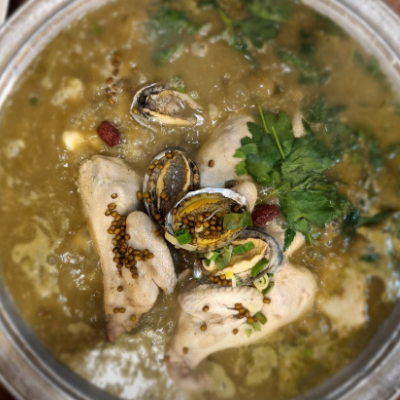 다슬기와 전복으로 육수를 내고 녹두와 찹쌀 누룽지 등으로 풍미를 더해 푸짐하고 맛있습니다.