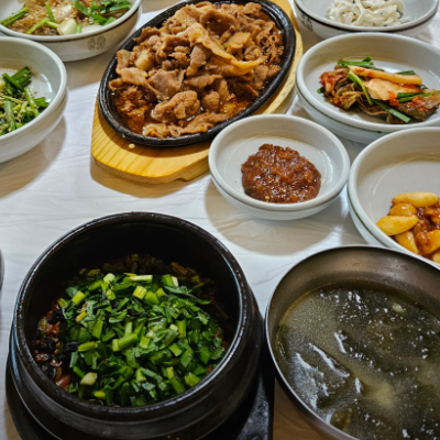 제육양이 푸짐하게 나와서 강된장에 쌈싸서 먹기 좋아요. 속도 든든하고 우렁이 강된장 너무 맛있고 직원분들도 친절해서 좋아요.