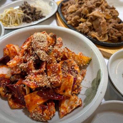 제육이랑 쌈써먹으면 고소하니 맛있어요. 특히 우렁이무침이 진짜 새콤새콤한게국수 넣어서 비비면 골뱅이비빔면 저리가라일 듯 해요.
