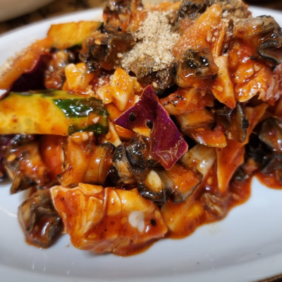 우렁이무침이 진짜 저세상맛이에요. 새콤달콤한게 입맛 돋구기에도 최고입니다.