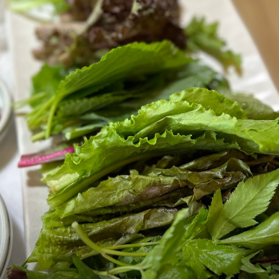 간만에 야채에 싸먹어서 건강해진 기분이에요. 다양한 쌈채소가 정말 싱싱합니다.