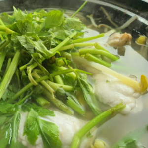 복지리의 미나리 향이 향긋하고 국물이 시원해요.