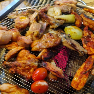가디회식으로 딱이에요. 부드러운 허벅지살을 양념하여 숯불에 구워먹는 숯불닭갈비이며 먹자골목쪽에서 먹기 좋았습니다.