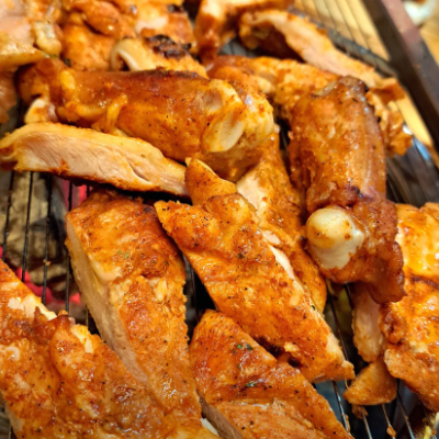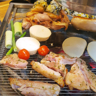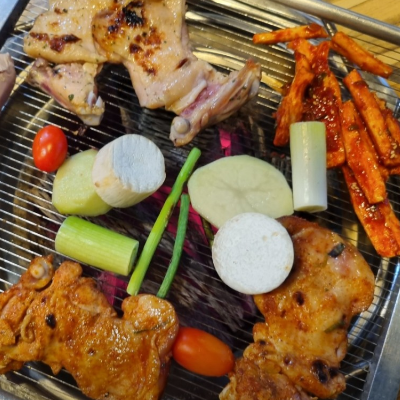 가디회식으로 딱이에요. 부드러운 허벅지살을 양념하여 숯불에 구워먹는 숯불닭갈비이며 먹자골목쪽에서 먹기 좋았습니다.
