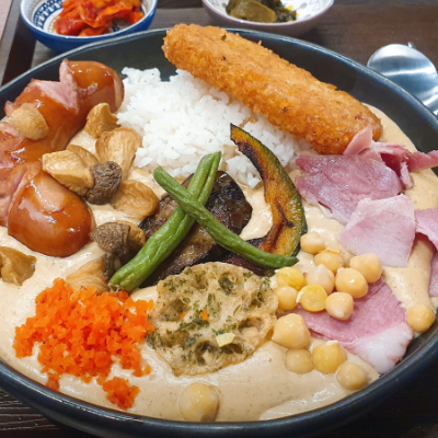 토핑부터 카레까지 완전 취향저격입니다. 크리미하고 은근히 매콤한 크림카레는 어쩐 토핑과도 잘 어울렸어요.