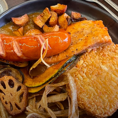 크림카레는 구운연어나 소세지랑 특히 잘 어울렸어요. 함께 나온 샐러드도 신선하고 맛있었고 한 그릇 뚝딱하면 딱 배불러요.