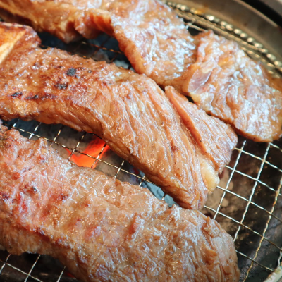 참숯에 구운 이동양념갈비살 불향이 정말 맛있어요. 부드럽고 입에 넣자마자 육즙이 팡팡 터지고 녹아요.