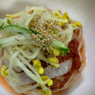 비빔국수는 쫄면양념같아요. 김치가 새콤하니 국수들과 잘 어울립니다.