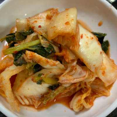 김치는 겉절이는 아니고 익은 새콤한 스타일이에요.