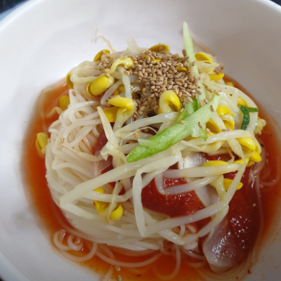 비빔국수는 쫄면양념같아요. 김치가 새콤하니 국수들과 잘 어울립니다.