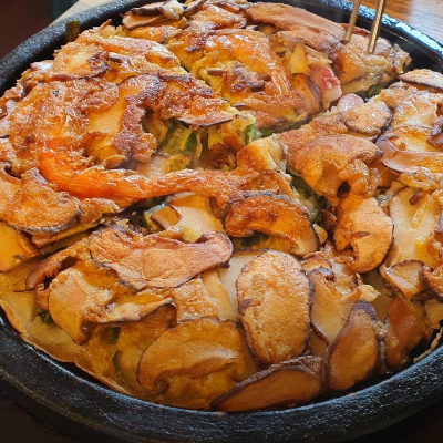 파전은 버섯이 얼마나 많이들어있는지 버섯 들어간 파전은 처음 먹어보네요. 너무 맛있어요.