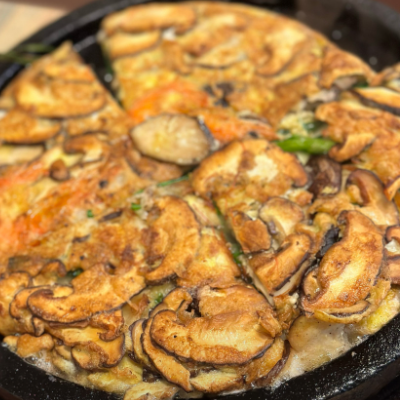 파전에 버섯이 완전 듬뿍 들어있어요. 평상시 먹던 파전이 아니고 뭔가 특별한 맛이여서 색달랐어요.