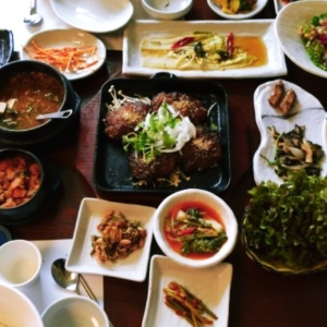 강된장쌈밥 밥꽃떡갈비정식 : 18,000원