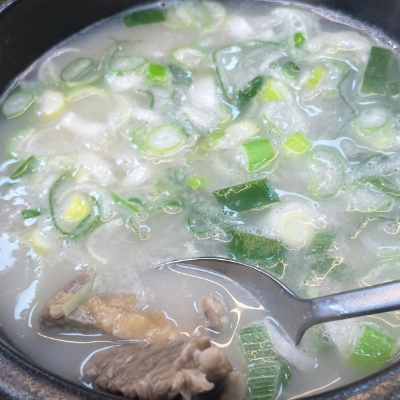 사골곰탕의 뜨거운 국물은 추운 날씨에 딱 어울리는 따뜻한 간식이에요.