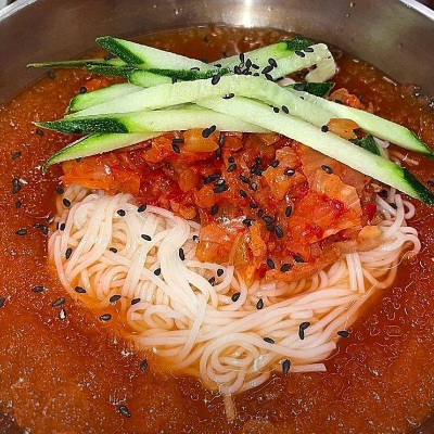 꼭 먹어야 할 메뉴는 김치말이 국수예요.