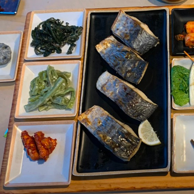 고등어가 너무 싱싱하고 직화제육도 맛있어요. 반찬으로 나오는 잡채도 맛있어요.