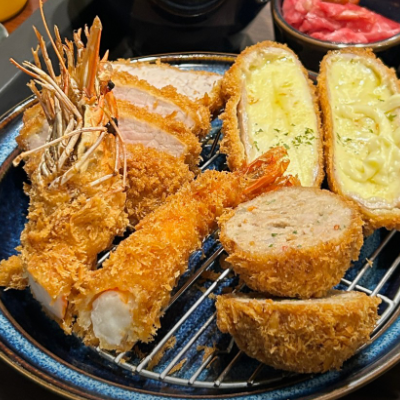 코돈부르, 안심, 치즈, 새우튀김이 있었는데 다 너무 맛있어요. 입에서 녹는 느낌입니다.