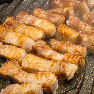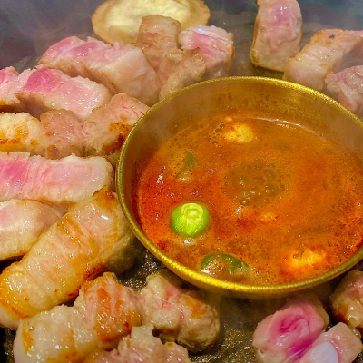근처 숙소 사장님의 추천으로 왔는데 고기 굽는 방식이 특이해서 불 튈 염려가 없어 편하네요.