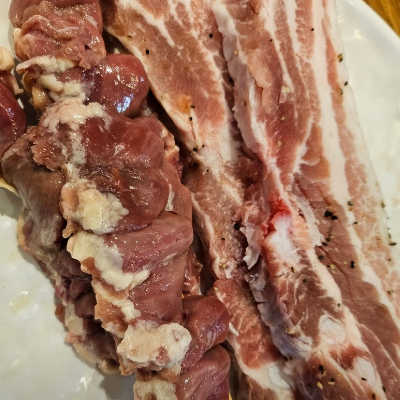 많은 종류의 고기가 제공되지만 무엇보다 삼겹살이 제일 입맛에 맞고 무난한 것 같습니다.