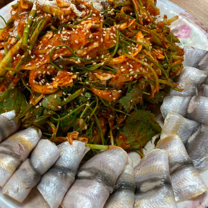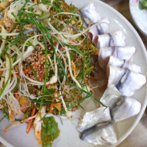 밴댕이 회랑 무침도 같이 먹었어요.