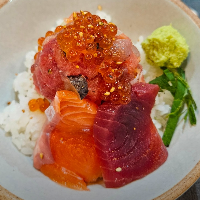 고급스런 카이센동 전문점입니다. 다찌형식의 테이블에 주문하면 바로 신선한 재료들을 밥위에 수북히 올려주십니다.