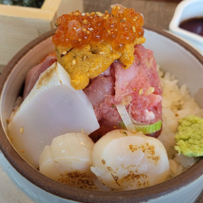 잘 만든 카이센동을 먹을 수 있어서 좋네요. 맛있고요. 재료도 좋고 전복 있는 카이센동은 첨 먹었는데 잘 쪄서 부드러워서 인상적이에요.