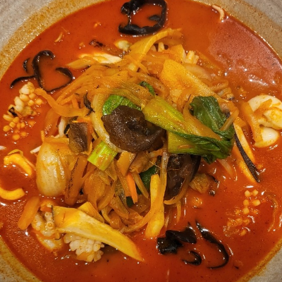 해산물이 푸짐해요. 빨간 육수에 메뉴가 신선했어요. 비주얼 짱 가성비짱입니다.