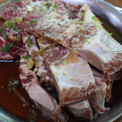 생갈비 부드럽고 뼈도 통째로 나오는데 먹음직스러워요.