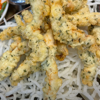 복튀김은 겉은 바삭하고 속은 깊은 맛이 나서 더 좋았습니다. 특히, 다양한 종류의 튀김이 한 판에 나와서 먹는 재미가 있었습니다.