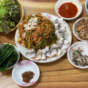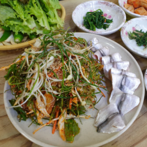쌈채소에 밴댕이회 올리고 된장이랑 마늘 같이 먹으면 진짜 꿀맛 입니다.