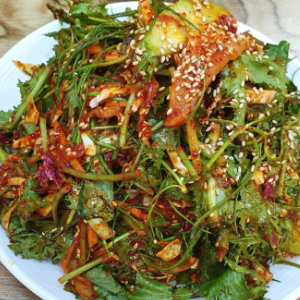 채소들이 쌉쌀하니 시큼 달달한 소스와 잘 어울리는 맛이예요.