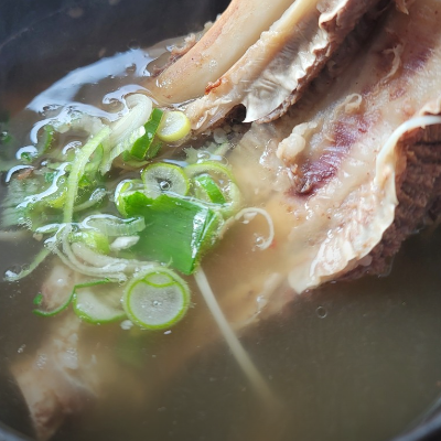 국물이 기름끼가 없는 깔끔한 맛이고 고기가 두대 오는데 둘다 커요. 고기 살점도 많이 있어요.