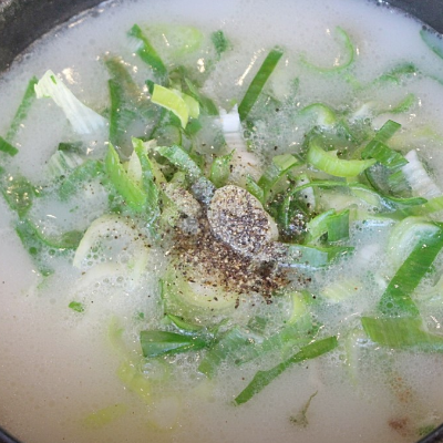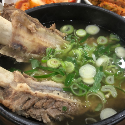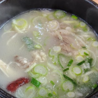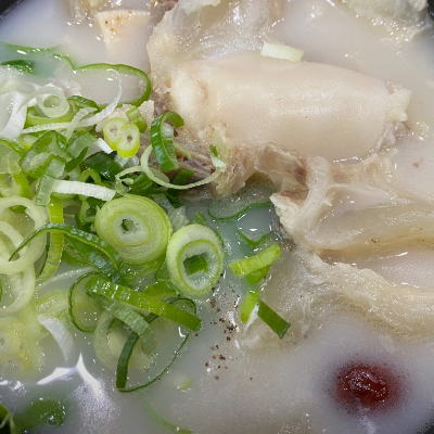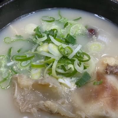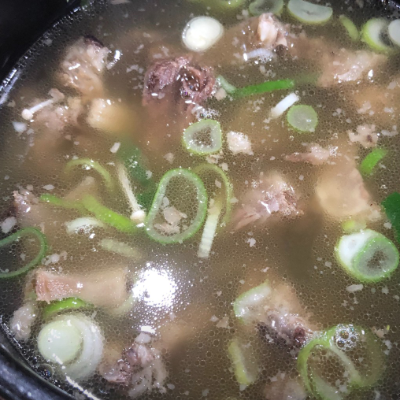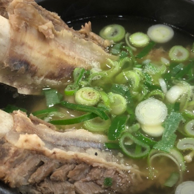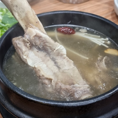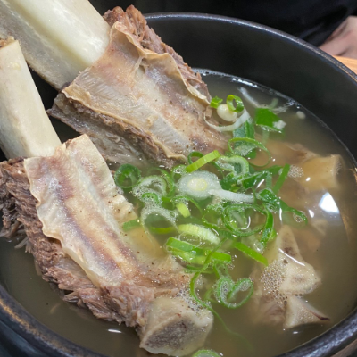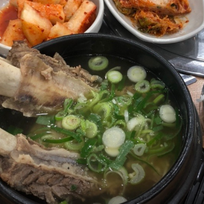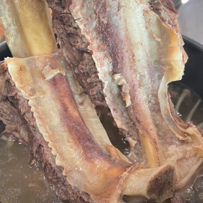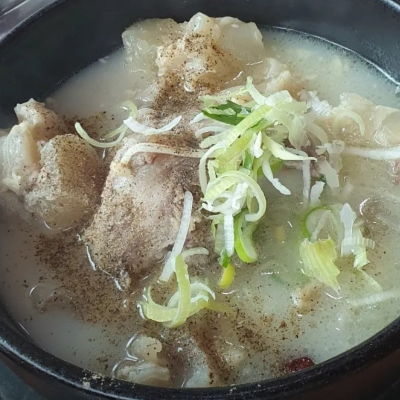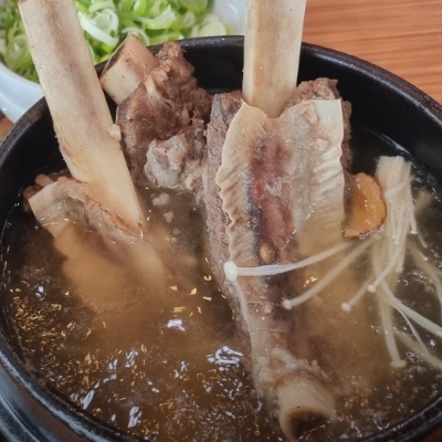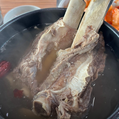 국물이 기름끼가 없는 깔끔한 맛이고 고기가 두대 오는데 둘다 커요. 고기 살점도 많이 있어요.