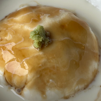 1인 세트메뉴(식사 육회덮밥)을 시켰는데 처음에 따뜻한 두유로 시작해서 순두부, 수란을 어느정도 먹으면 와사비크림새우와 아게다시도후를 주시네요.