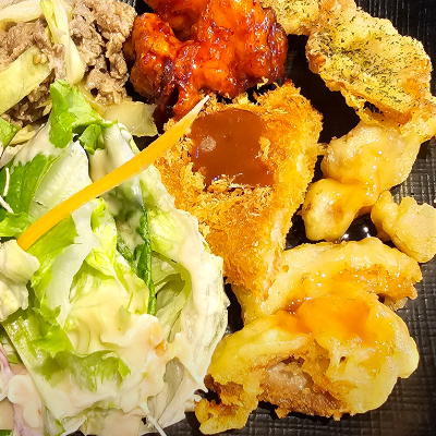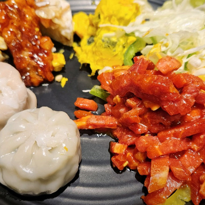 초밥 말고도 타코야끼 탕수육 닭강정 등등 다양한 샐러드바 음식이 준비되어 있어서 질리지 않고 맛있게 많이 먹을 수 있는 것 같아요.