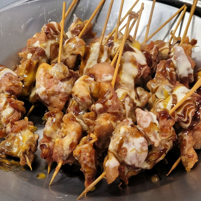 셀프바에 닭강정 닭껍질튀김 감자튀김 육회 오코노미야끼 피자 등등 초밥 못먹는 아이도 다양하게 먹을 수 있는 메뉴가 많았어요.